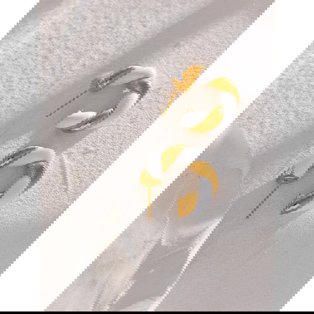 Curved and textured stainless steel half-hoop earrings. Modern and durable, they combine a slim design with a unique textured effect to create stylish earrings. An elegant and chic piece, ideal for everyday wear.